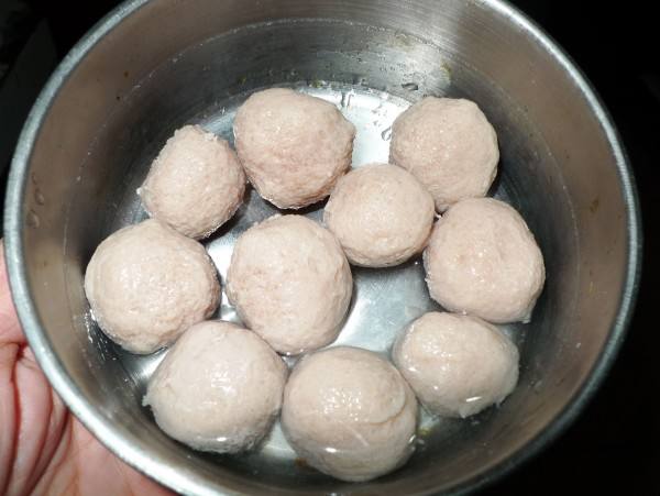 結(jié)果越加淀粉,丸子越軟,松軟程度簡(jiǎn)直是比芋頭還芋頭。